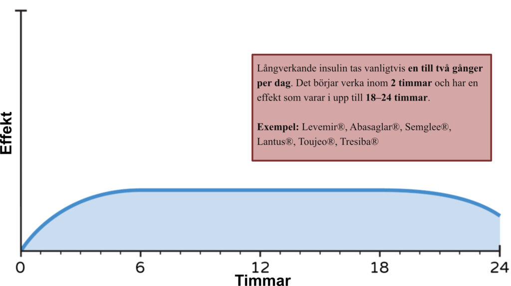 | Insulin glargin | ca 1 timma | ingen topp | Upp til 24 | Upp till 24 |