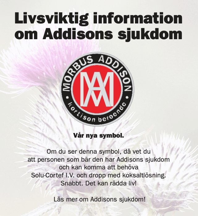 februari 27, 2020 Addisons sjukdom – Livsviktig information Vad är Addisons sjukdom? När binjurebarken sakta upphör att producera kortisol, aldosteron och DHEA blir man allvarligt sjuk och detta